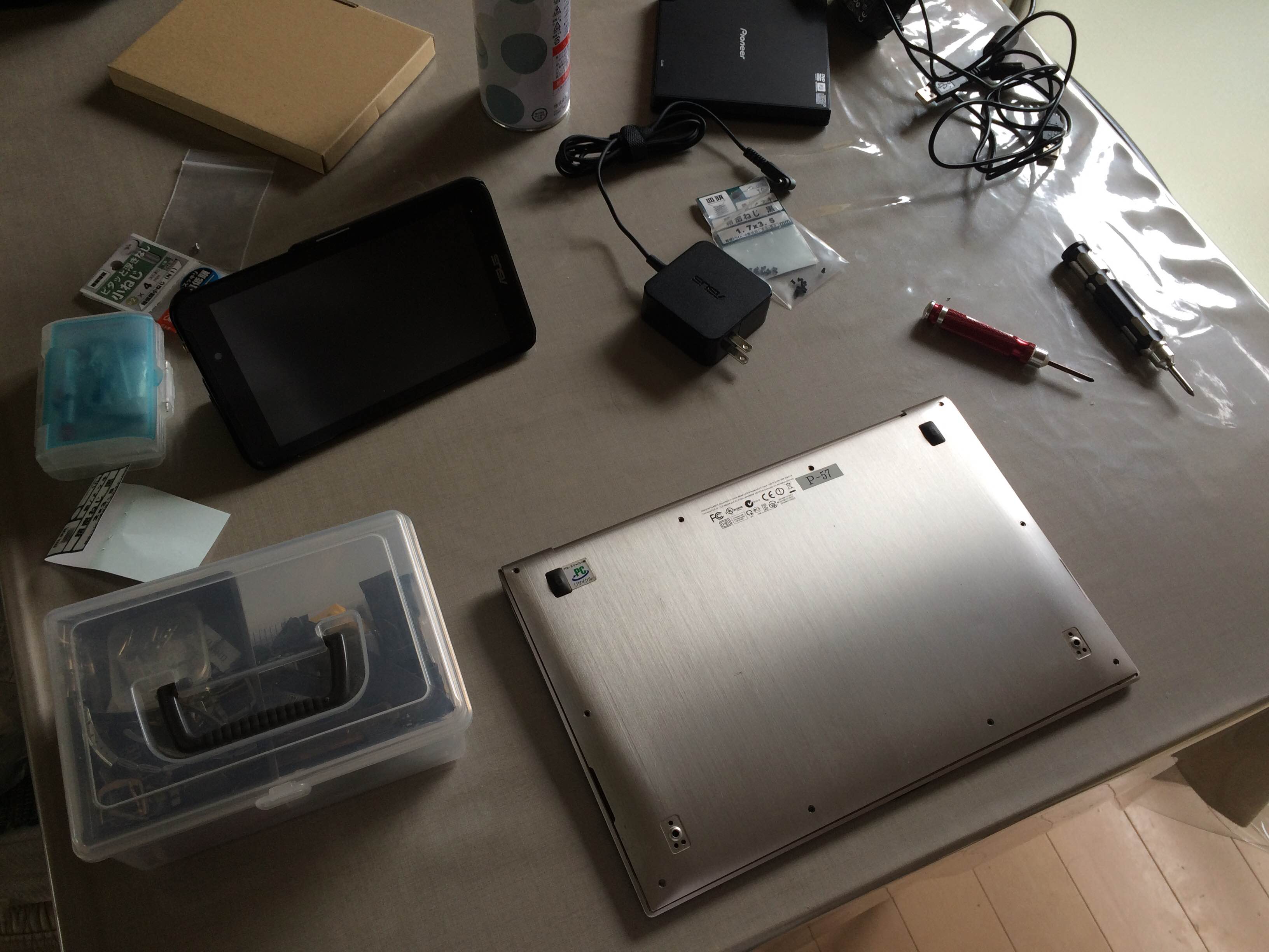 SSDのみ新調(しっかり抜かれてたw)、ホムセンで買ってきたネジで締め直し。