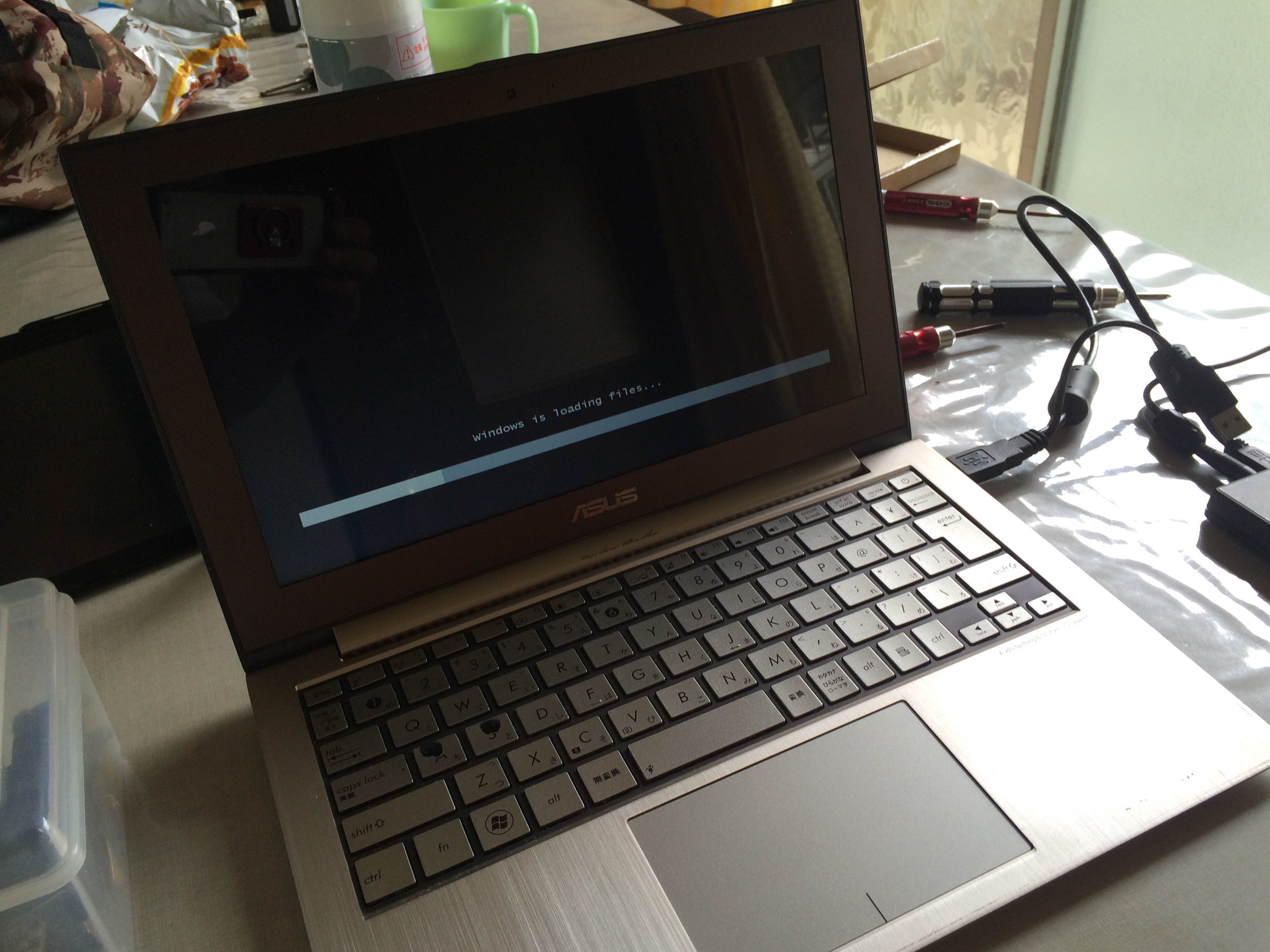 そして外付けドライブとUSBメモリに各種ドライバを用意して、いざ起動。