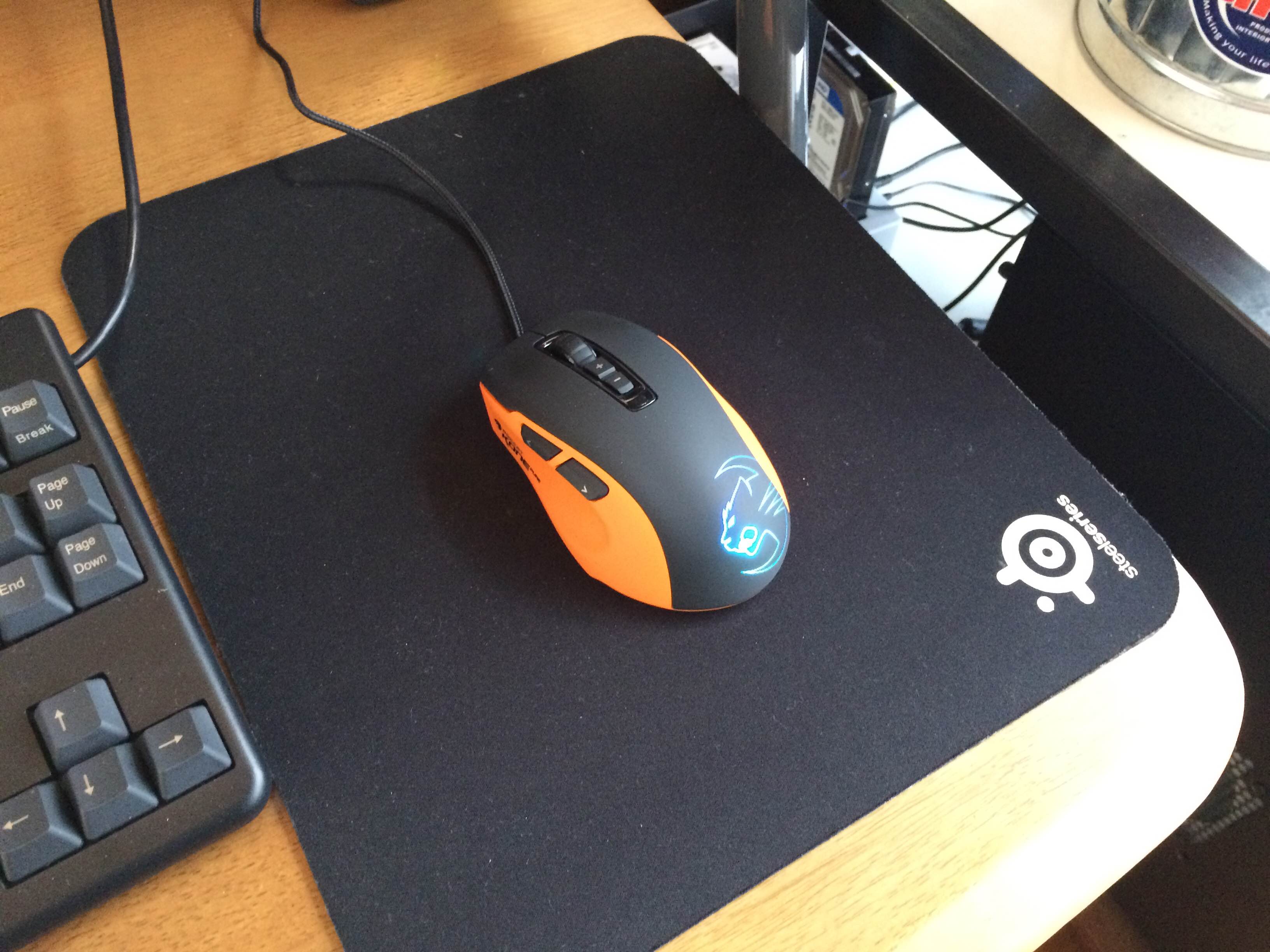 実はマウスと同じROCCATのメカニカルの青軸と悩んでいたのですが、先日ガタノリさんと久々にミナミへ行きまして、そこで実機を触ってみて東プレに決めました。